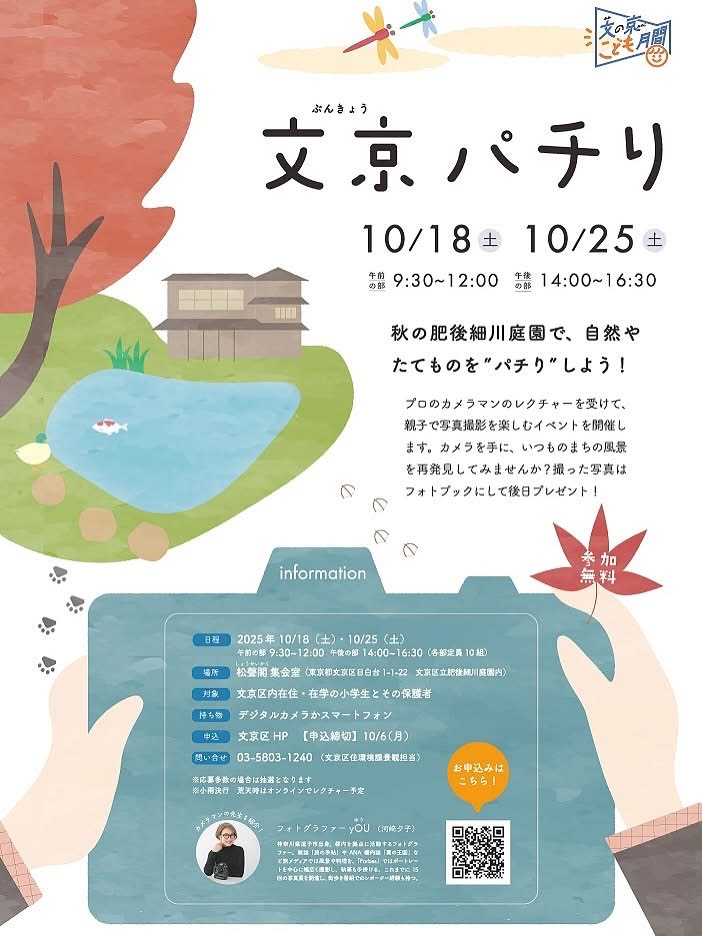 このたび文京区主催の親子向け写真ワークショップ「文京パチリ」に